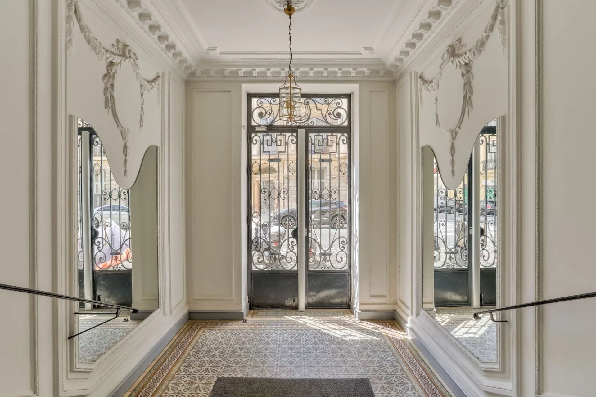 Superbe parquet massif en point de Hongrie en parfait état, moulures d'origine, hauteurs sous plafond généreuses.